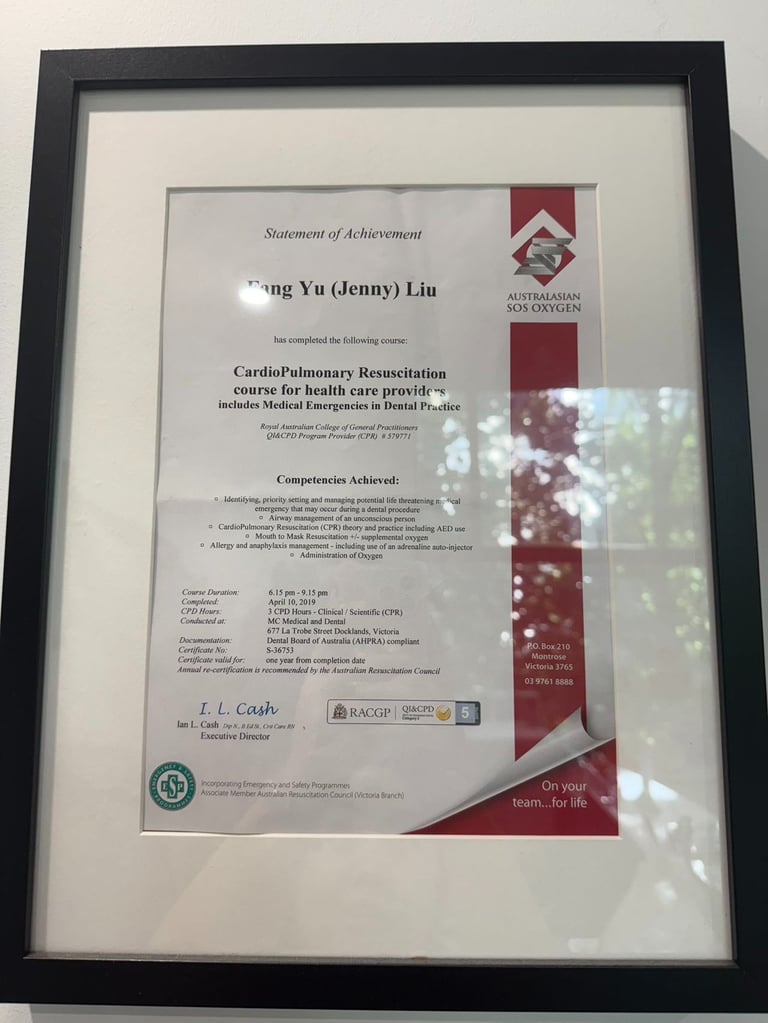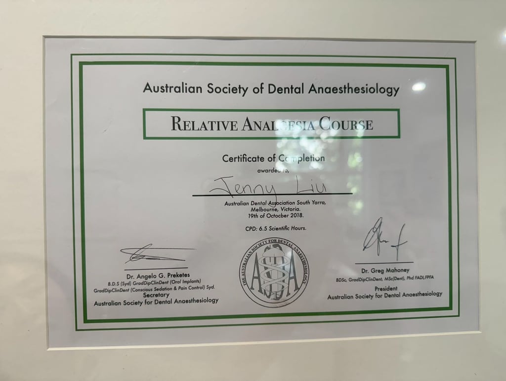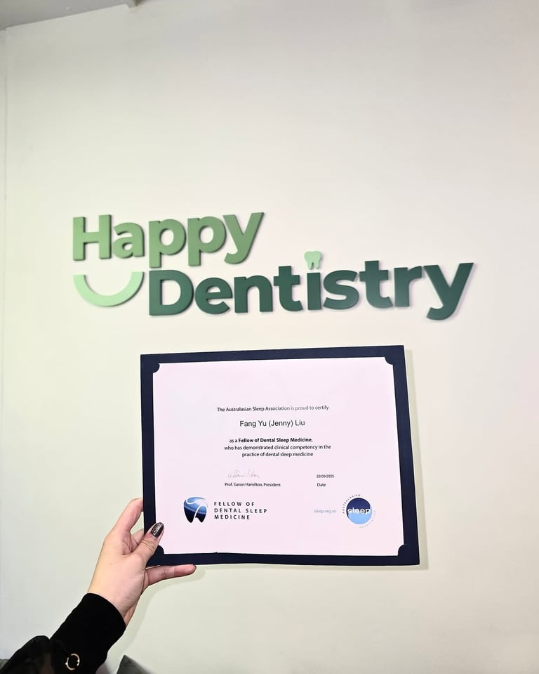 Jenny is listed on the Australasian Sleep Association’s FDSM registry, a distinction reserved for dentists who have completed advanced fellowship training and demonstrated clinical competence in the dental management of sleep-related breathing disorders, including obstructive sleep apnoea. As one of a small number of practitioners in Australia to hold this qualification, she brings highly specialised expertise in using customised oral appliances and dental interventions to help patients manage sleep-disordered breathing and improve their overall health.