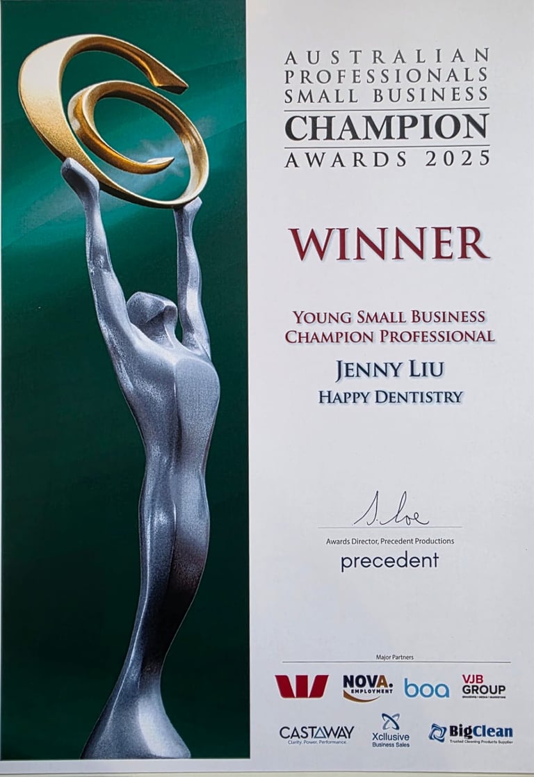 - Finalist – 2025 Australian Small Professional Business Champion Awards (Dental Services Category)