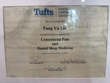 Dr.Jenny Liu 是一位常驻墨尔本的牙医、临床导师和创业者,专注于 颞下颌关节功能紊乱(TMJ) 以及 阻塞性睡眠呼吸暂停(OSA) 等睡眠相关疾病的口腔治疗,并在 预防及美容牙科 领域拥有丰富的临床经验。毕业于 昆士兰大学牙科荣誉学士课程(BDSc Hons),并在西班牙 Jaume I 大学(UJI) 深造 颞下颌关节与睡眠呼吸障碍,获得相关文凭。