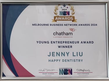 作为 Happy Dentistry 的创始人和主要执业牙医,带领诊所不断成长,并荣获 墨尔本商业网络年度企业大奖、澳大利亚小型企业冠军奖 等行业认可,并入围 青年企业家大奖决赛。除此之外,还担任 墨尔本大学牙科学院 DDS1 临床导师,教授基础操作、临床思维与患者沟通技巧,支持下一代口腔专业人才的成长。